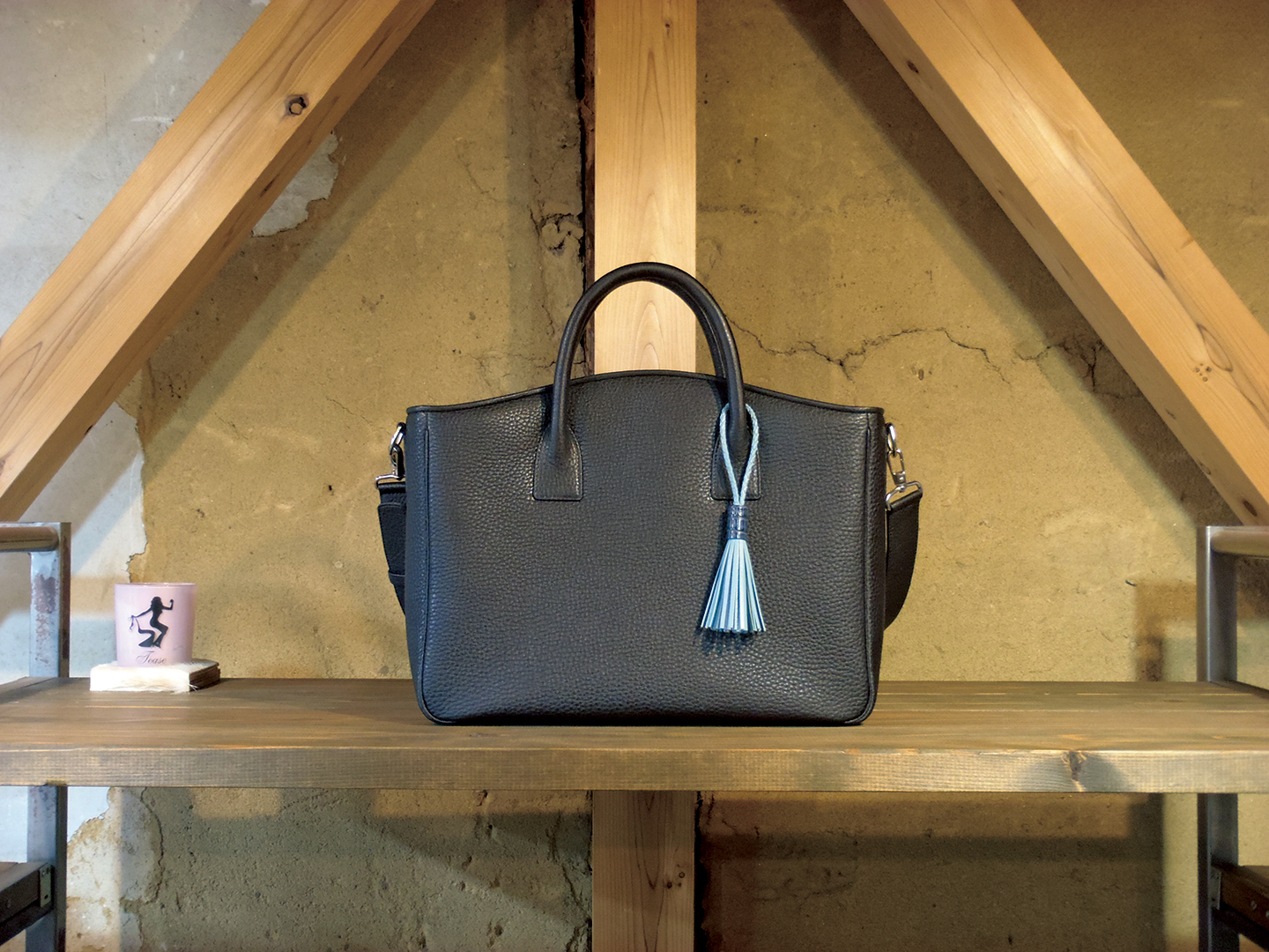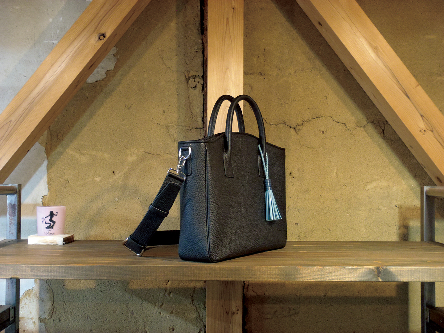 中が見えないようにファスナーで閉じることができ、またファスナーを全開にして中に落とし込めばマグネットホックで真ん中を留めるだけの使い方もできるPELT定番のトートバッグ。持ち手は仕立てから取り付けまで総手縫い仕上げで美しく、丈夫です。スクエアタイプでタッセルトートバッグより更にビジネスバッグとして用いやすいフォルムです。