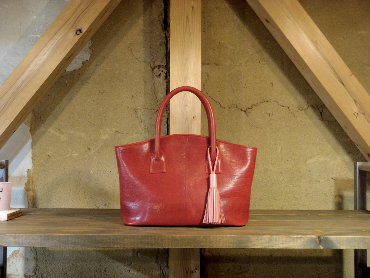 牛オイルドレザー / ブラウンH:18cm W:30cm D:10cm内ポケット:2スマートフォン用ポケット:1タッセルが揺れるシンプルなトートバッグS M L 3種類のサイズ…