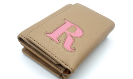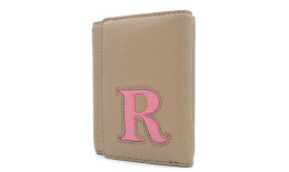 表側には革のインレイ(象嵌細工)によるアルファベットの “R” をアクセントに。Rの文字には美しいシボが特徴的なシュランケンカーフを使用し、ただゴートを切り抜いて裏からシュランケンカーフを出すだけではなく、へこまないよう文字をぷっくりと膨らませる技術を用いています。
